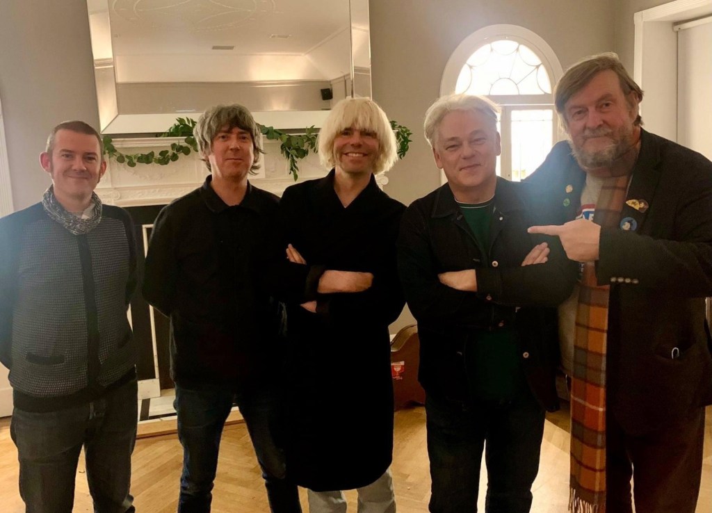 Thanks to everyone who attended the sold out Tim Burgess concerts, which were two nights of magic in the Strathaven Hotel. Tim performed in cahoots with Charlatans’ guitarist Mark Collins, Duglas T. Stewart, and the Pearlfishers’ David Scott and Stuart Kidd (left to right – Stu, Mark, Tim, David, Duglas). Apart from performing material from his solo career (including opening his set with a brand new song), Tim performed Charlatans’ songs and covers of BMX Bandits’ Serious Drugs and Teenage Fanclub’s Norman 3. Special nights.