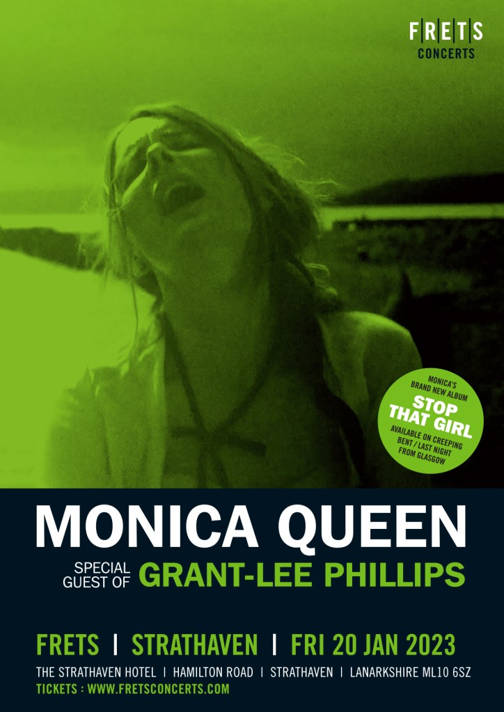 MONICA QUEEN is special guest of GRANT-LEE PHILLIPS on Friday 20th Jan 2023. This concert will be the first FRETS of 2023 at the Strathaven Hotel. Monica and Grant-Lee go way back, hanging out in LA when Monica was there with Thrum and GLP was fronting Grant Lee Buffalo. It promises to be another special FRETS night, tickets are on sale at this link: https://www.eventbrite.co.uk/e/grant-lee-phillips-at-frets-tickets-107692214312