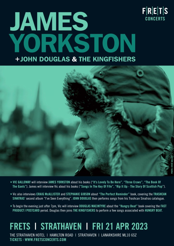 BBC Radio Scotland music presenter Vic Galloway will be appearing at FRETS on Fri 21st April (in the Strathaven Hotel), interviewing James Yorkston about James’ parallel career as a published author. In turn, James will be discussing Vic’s ‘Songs In The Key Of Fife’ book with him, a great book that documents the Fence Collective and the East Neuk of Fife’s creative upsurge with King Creosote, The Beta Band, KT Tunstall, James Yorkston himself (among others).