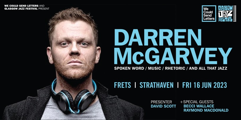 Many of you will be familiar with Darren through his two successful books (Poverty Safari & The Social Distance Between Us) and his television appearances on political /social commentary programs . He will be chatting to BBC Radio Scotland broadcaster and musician David Scott at the Strathaven Hotel about being an author and a performing artist (Darren performs hip hop/rap as Loki). Special guests are Becci Wallace (hip hop) and Raymond MacDonald (jazz).