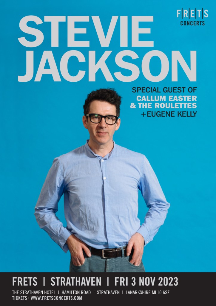 We are super-excited that Belle & Sebastian’s Stevie Jackson will be opening the final FRETS concert at the Strathaven Hotel this year. Stevie will be playing an acoustic set prior to Eugene Kelly playing a set of songs from his solo catalogue and The Vaselines. Callum Easter will be headlining, it’ll be a great night.