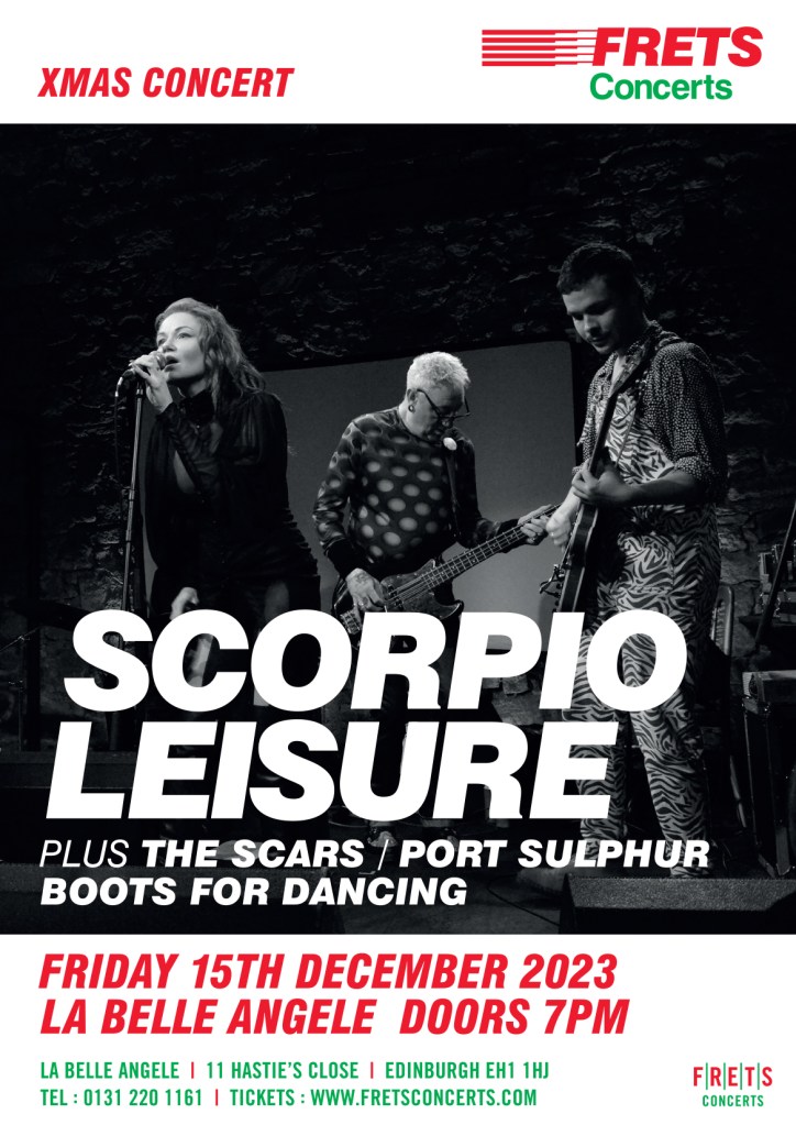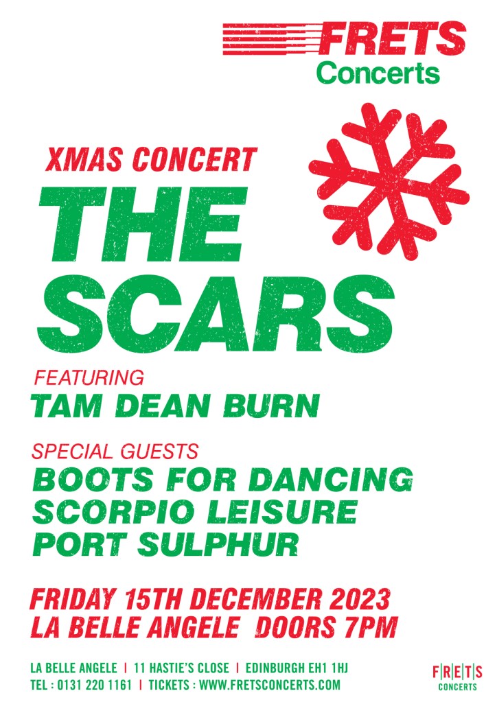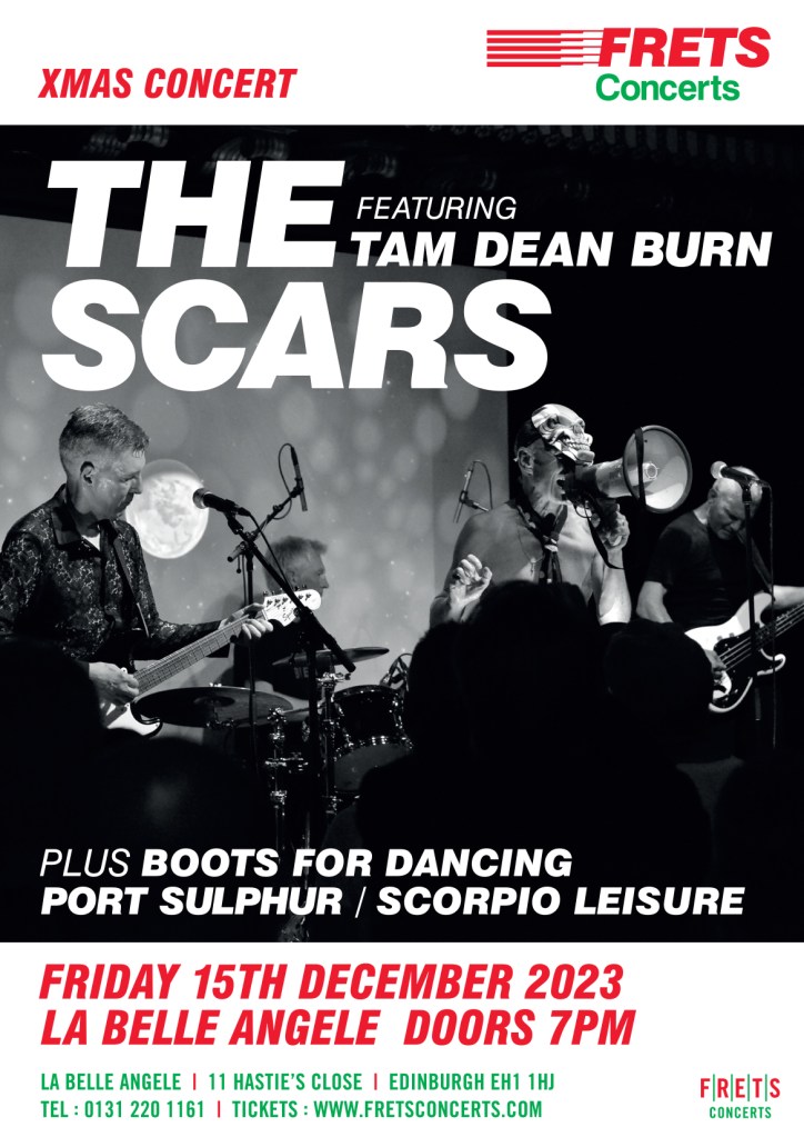 The final FRETS concert of 2023 takes place this Friday 15th Dec in Edinburgh, and it truly is a Xmas cracker. Post-punk Fast Product alumi The Scars, Boots For Dancing, Scorpio Leisure and Port Sulphur will be performing at La Belle Angele, doors open at 7pm with Port Sulphur on stage immediately thereafter. The concert will be finished at 10pm. The perfect way for FRETS to end 2023!