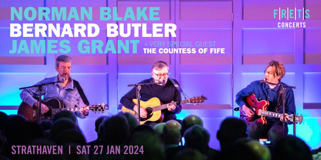 We are very pleased to announce Norman Blake (Teenage Fanclub), Bernard Butler (Suede / McAlmont & Butler) and James Grant (Friends Again / Love & Money) will be returning to the Strathaven Hotel on Sat 27th Jan for the first FRETS of 2024. Special guest is the incredible Fay Fife (Rezillos) in her alternative country group, The Countess of Fife.