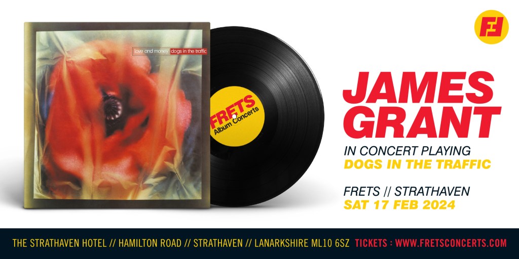 James Grant will be in concert performing Love & Money’s classic album ‘Dogs in the Traffic’ at the Strathaven Hotel on Saturday 17th Feb. This will be the inaugural FRETS: ALBUM CONCERT, where artists will perform an album from their catalogue in the intimate environs of the Strathaven Hotel.