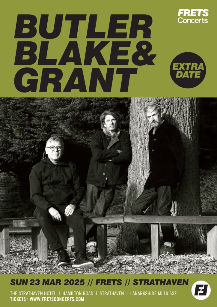 FRETS returns to the Strathaven Hotel with a couple of concerts by Bernard Butler, Norman Blake & James Grant to launch their debut album (Butler, Blake & Grant). The first show on Saturday 22nd March sold out within 1 hour, a second concert was put on sale for Sunday 23rd March which is almost sold out – there are only 10 tickets remaining. If you fancy coming along to see Butler, Blake & Grant in concert you better get in quick – the show will sell out soon. TICKETS: