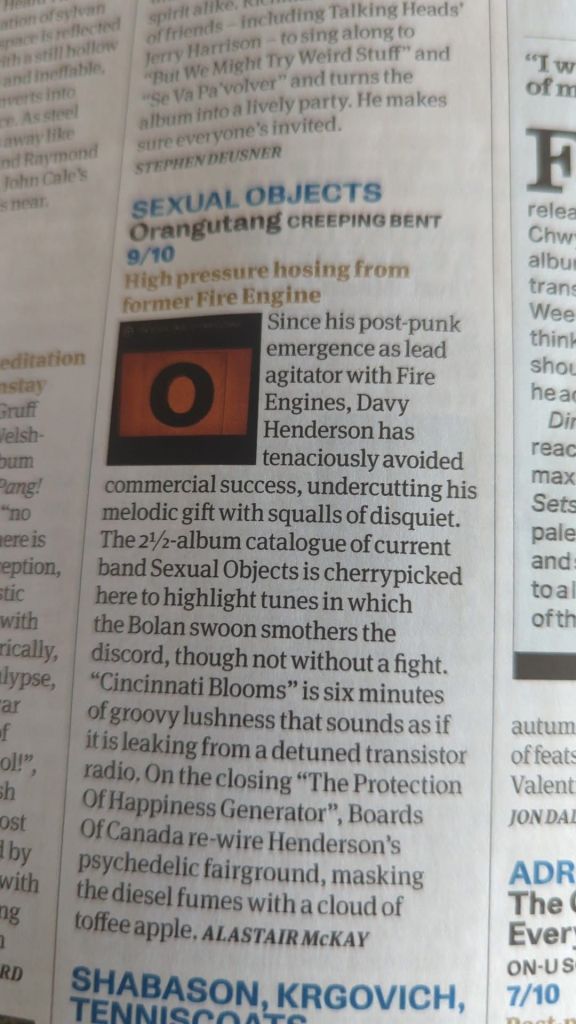 The reviews for the Sexual Objects album have been excellent (see the MOJO review above), here’s the latest review in Uncut: