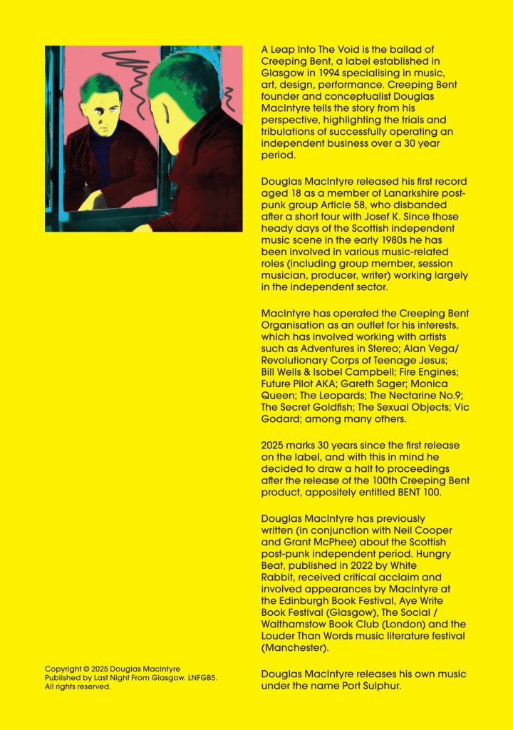 Creeping Bent: A Leap Into The Void is now available to buy from all good book shops or direct from this link: https://shop.lastnightfromglasgow.com/products/creeping-bent-a-leap-into-the-void-douglas-mcintyre?srsltid=AfmBOoq4JM9P-C4O0Stt3BS9DLzIKQmJ0M2kkcaId6tkj_wuIR9psRF3