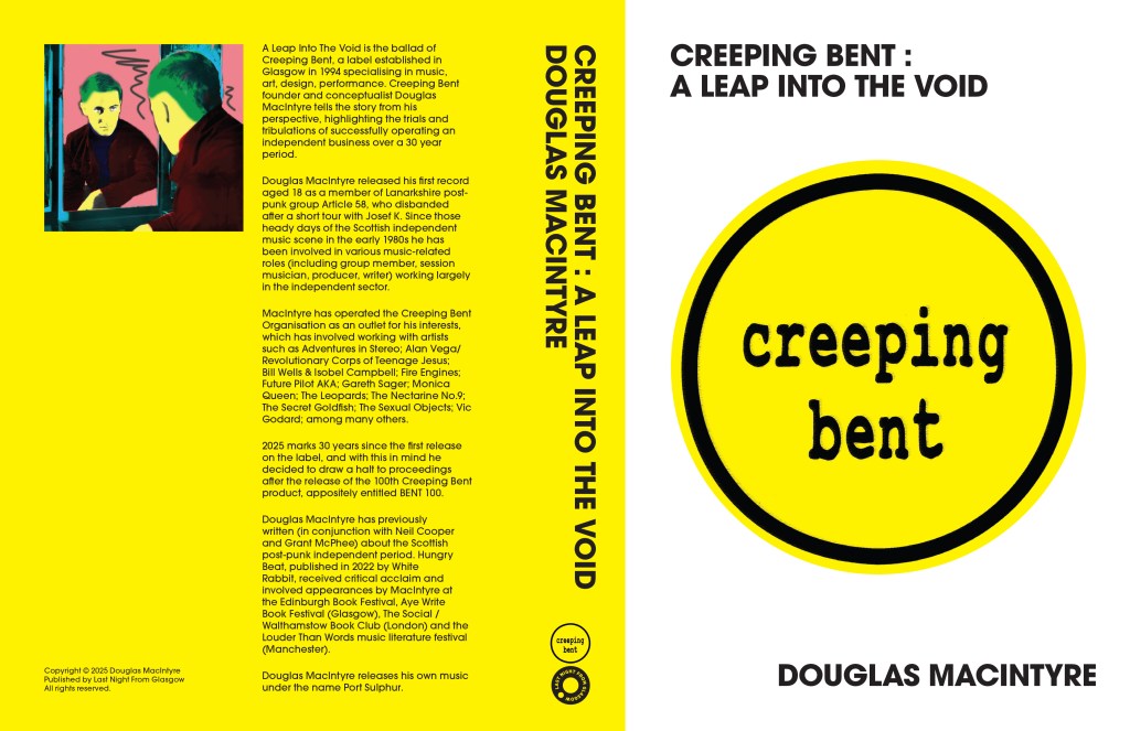 A Leap Into The Void is the ballad of The Creeping Bent Organisation, a label established in Glasgow in 1994 specialising in music, art, design and performance. Creeping Bent founder and conceptualist Douglas MacIntyre tells the story from his perspective, highlighting the trials and tribulations of successfully operating an independent business over a 30 year period. Featuring apperances from Fire Engines, Vic Godard, Jazzateers and The Secret Goldfish to name a few, this book chronologically details the creativity and vibrancy of Scotland’s underground cultural pioneers.