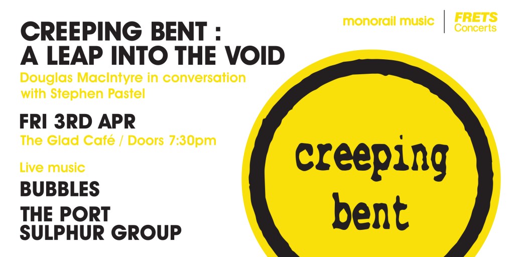 BUBBLES / THE PORT SULPHUR GROUP / Douglas MacIntyre in coversation with Stephen Pastel about 30 years of Creeping Bent. The Glad Cafe, Friday 3rd April.
