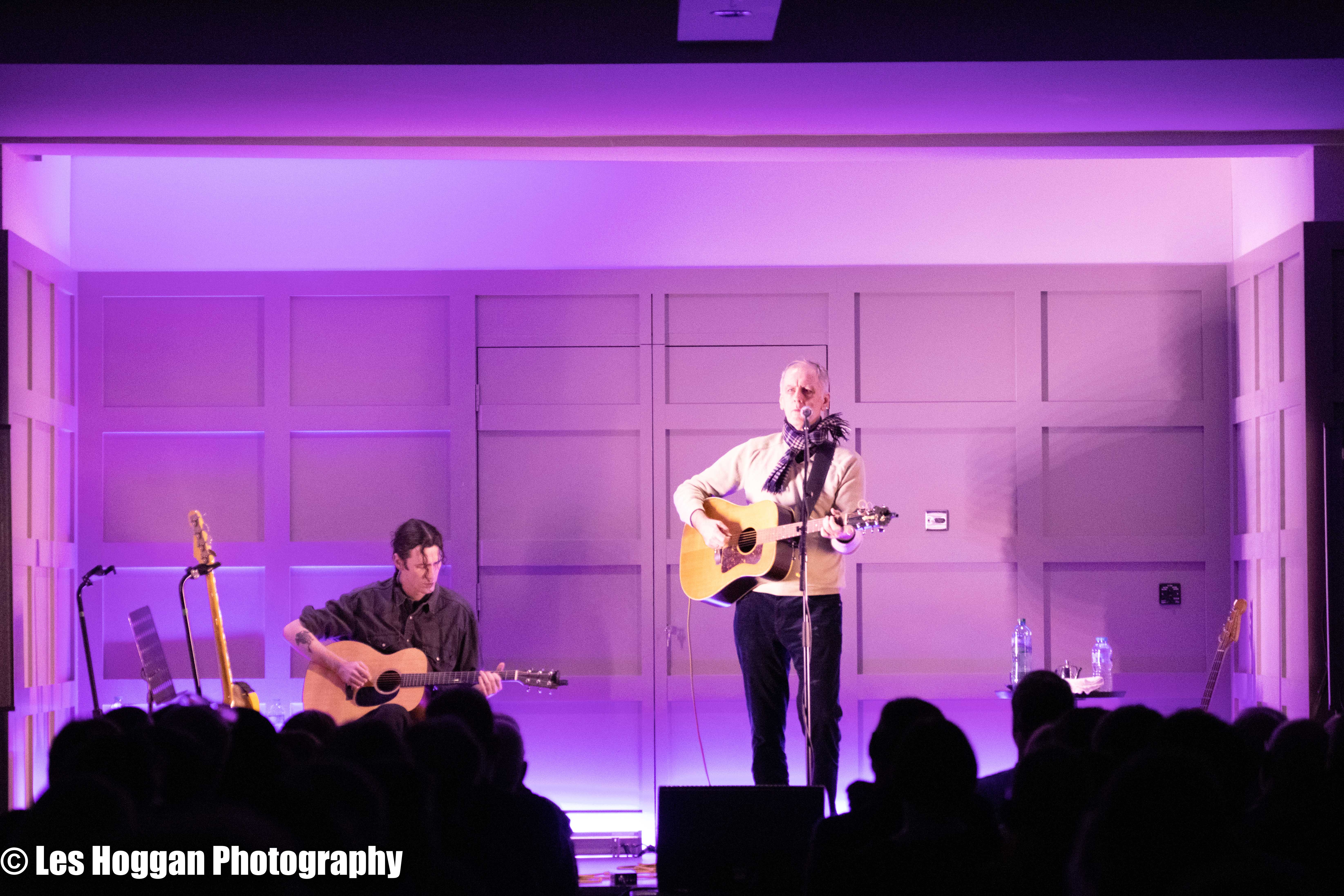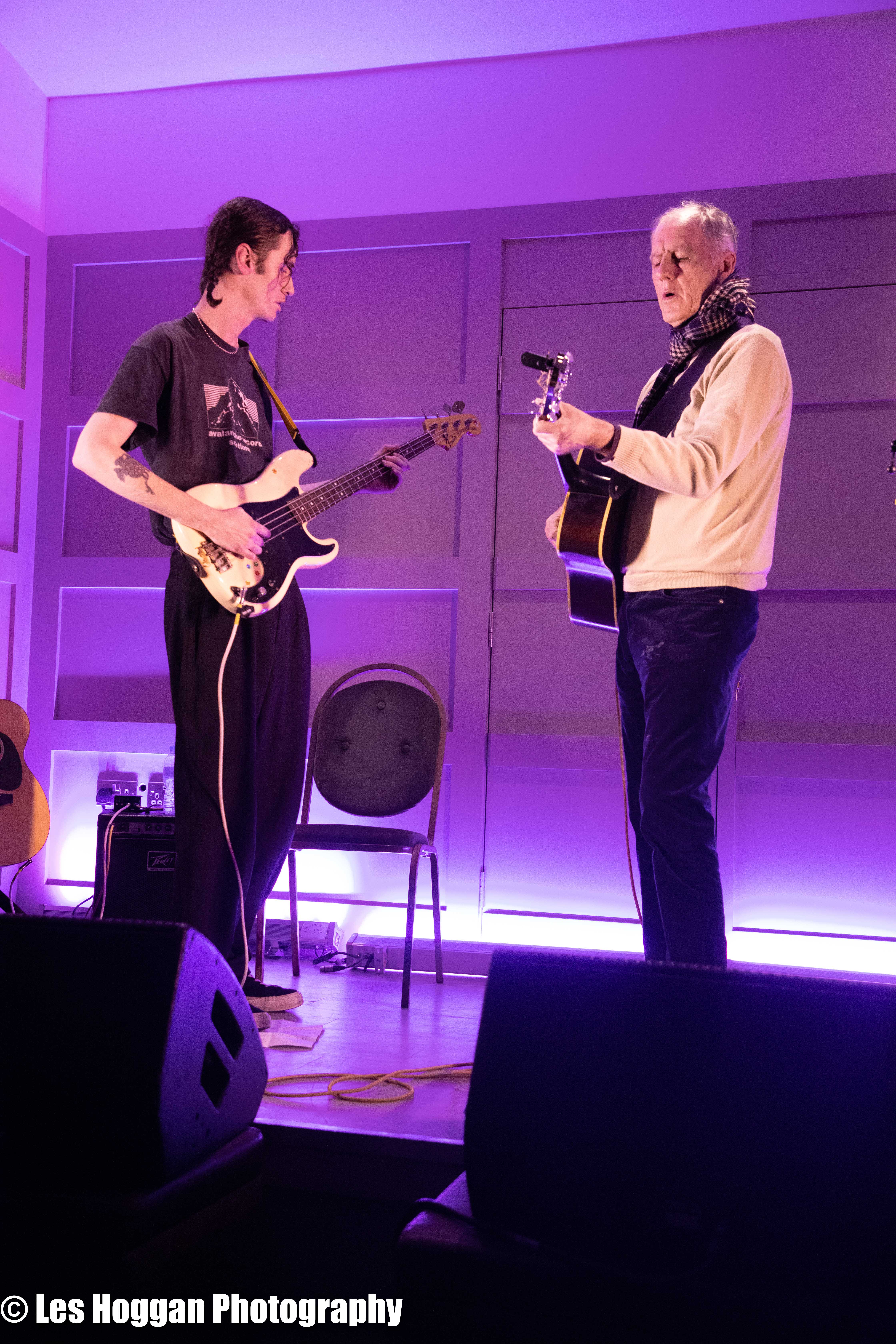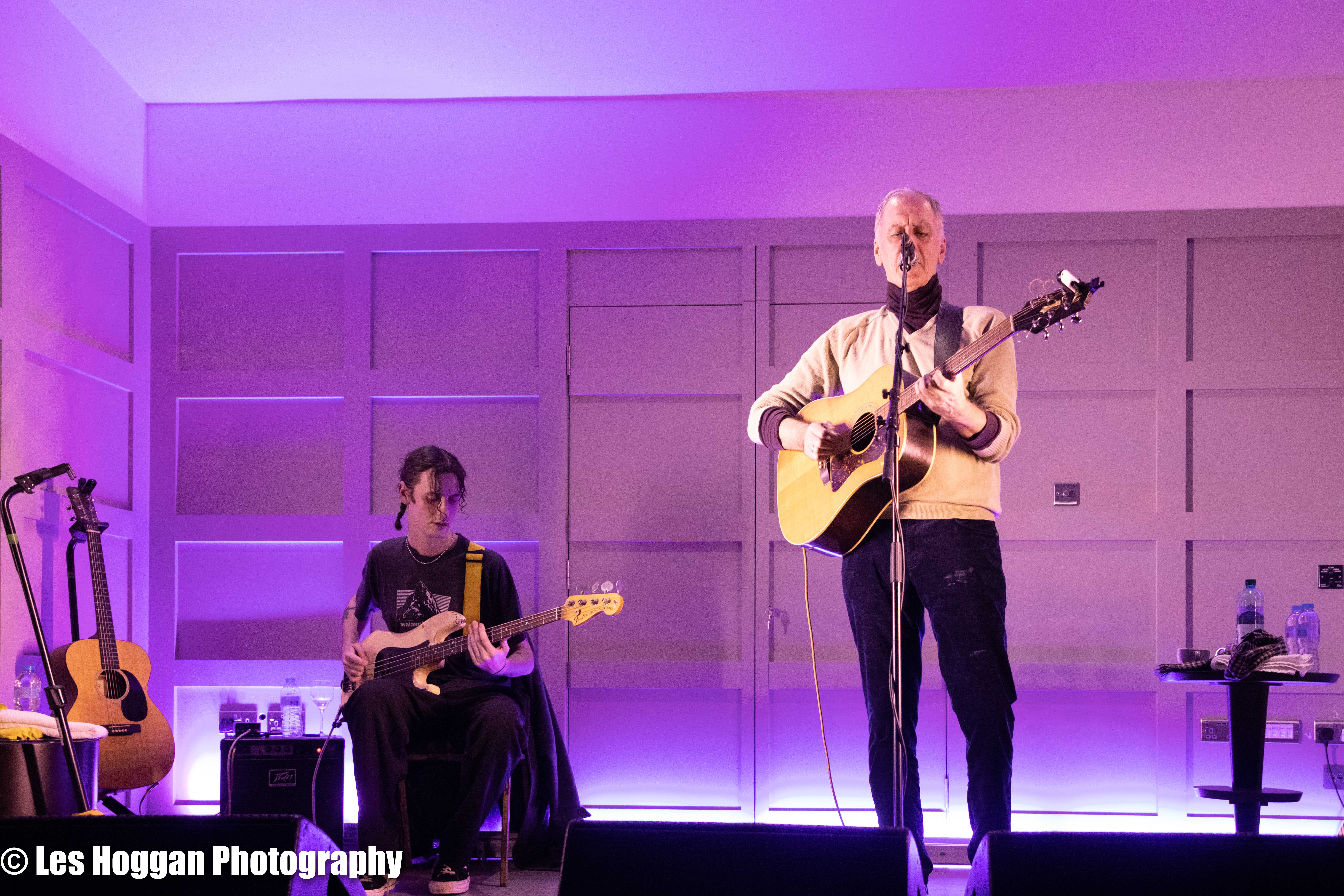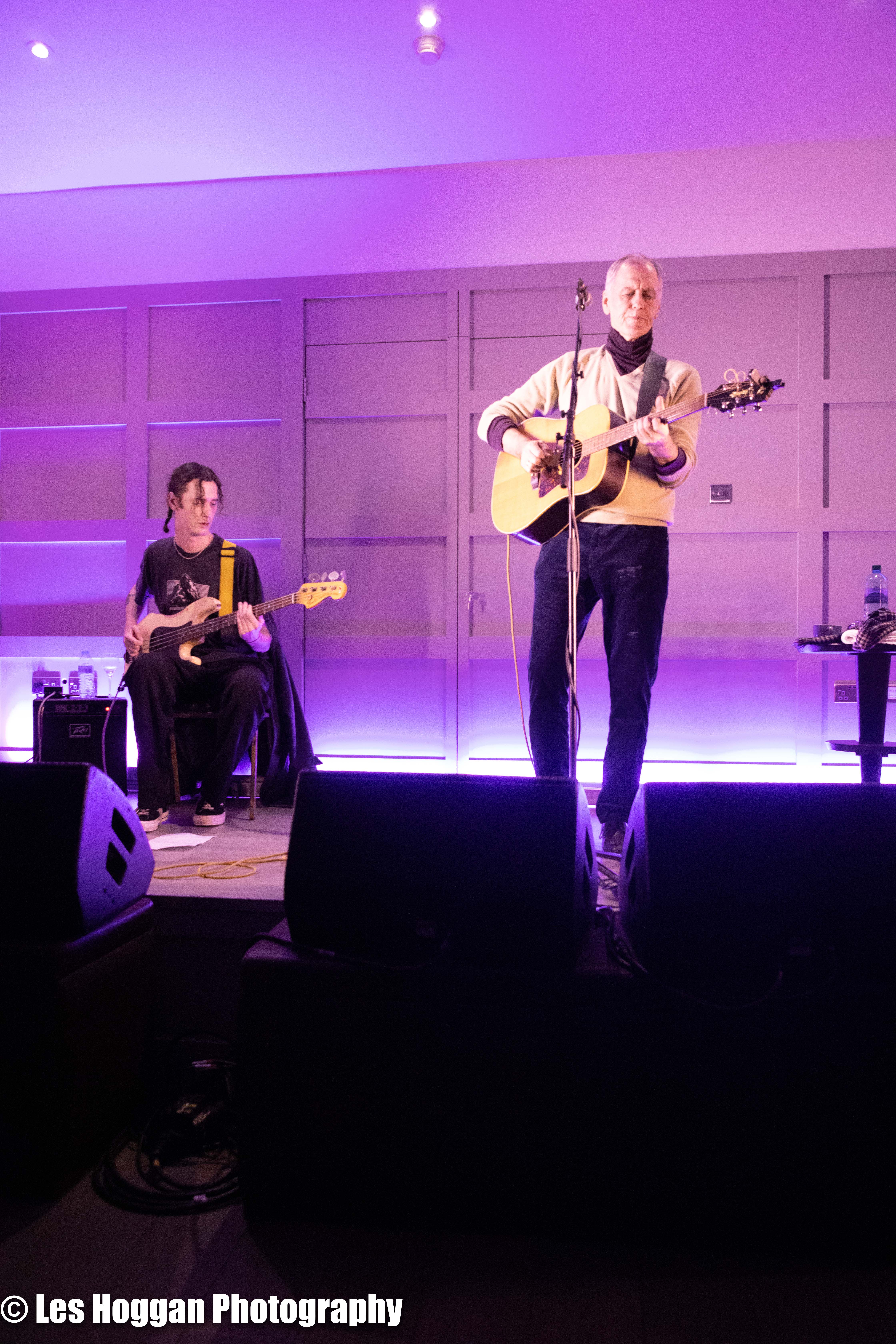 Robert Forster, accompanied by his son Louis, performed a set at Strathaven Hotel on March 11th. This was the opening gig of their tour and was also the first time they had ever performed on stage together, a coup for Frets Concerts. THey were supported by Francis Macdonald, who also performed a duet of ‘Love Goes On’ with Robert as an encore.