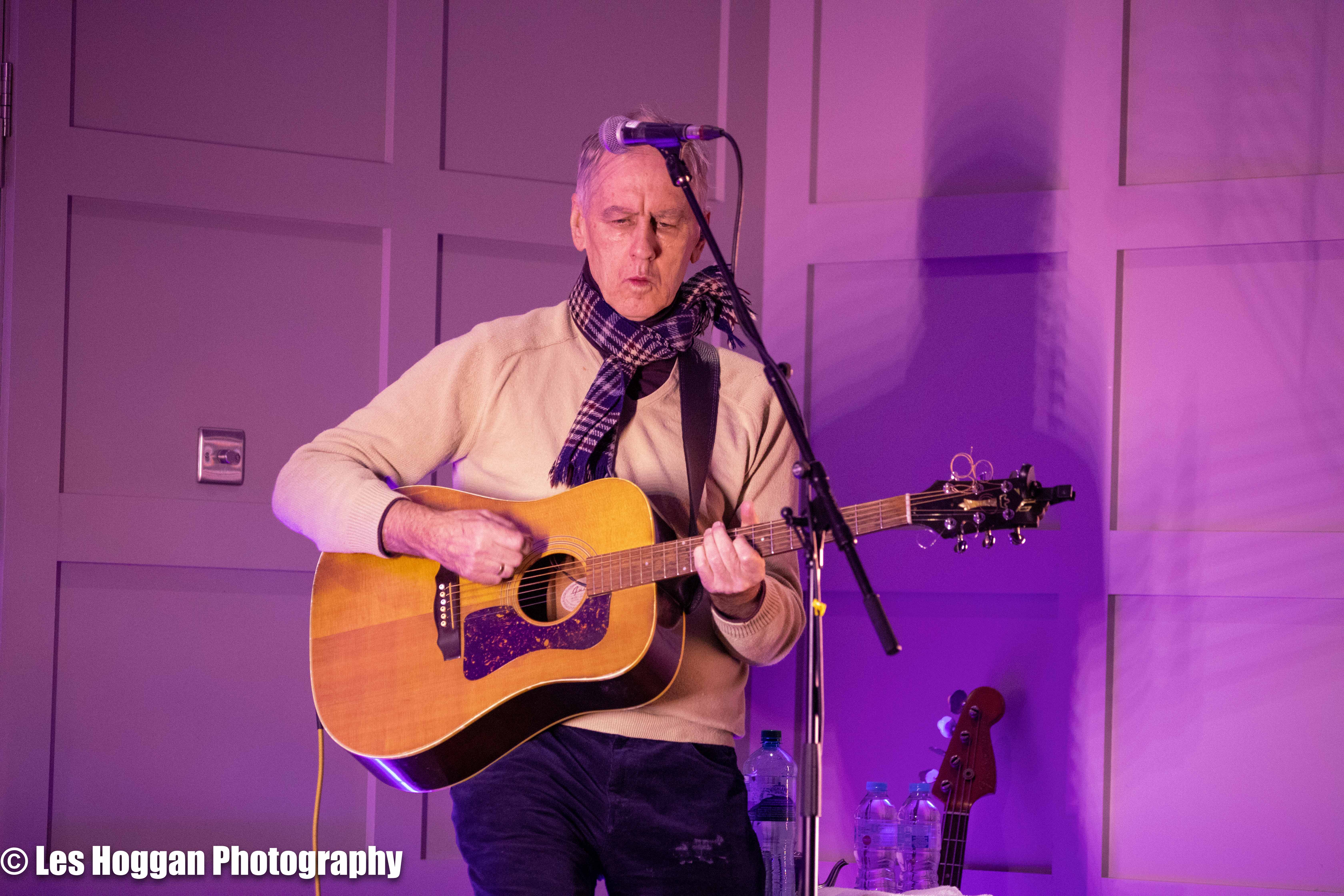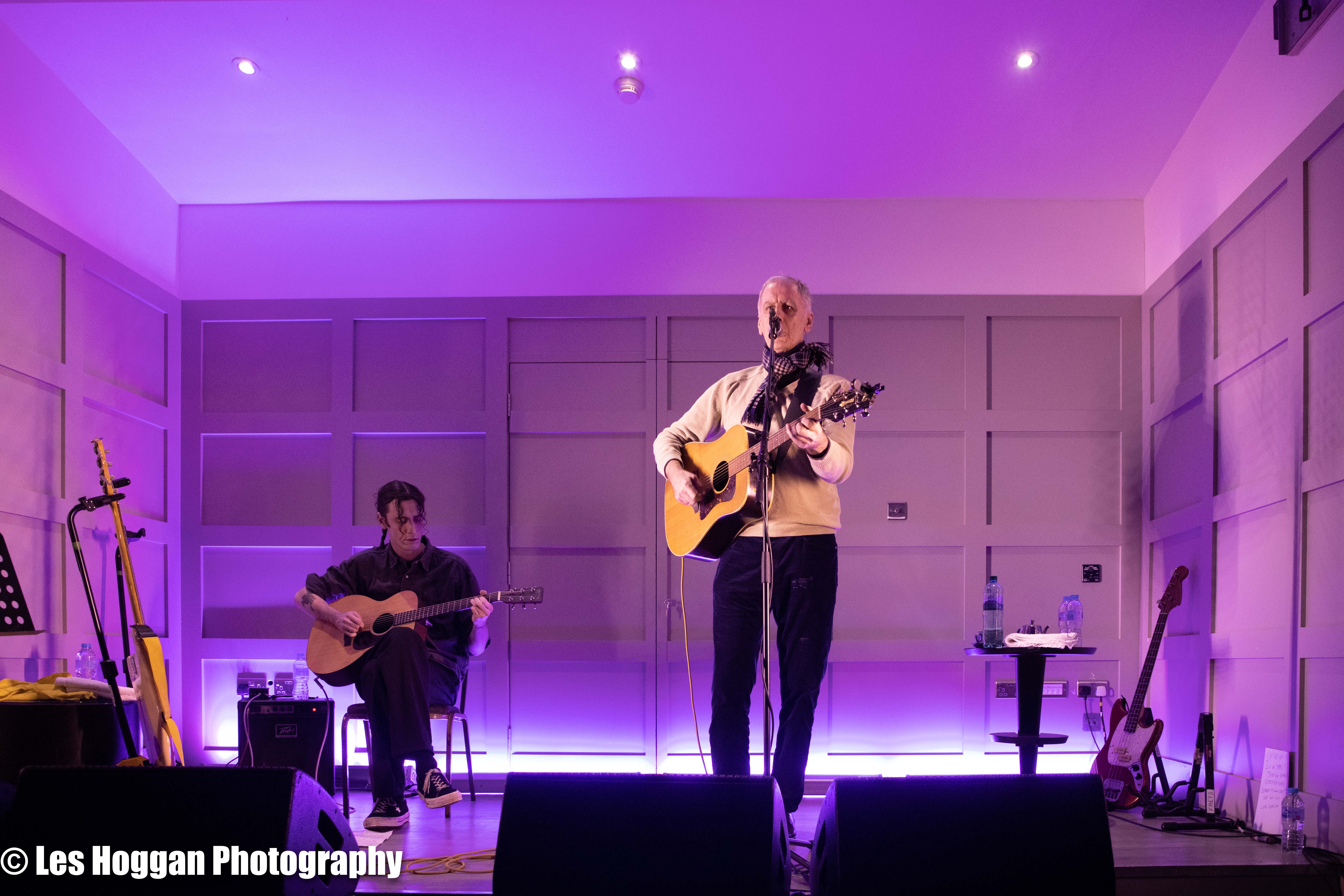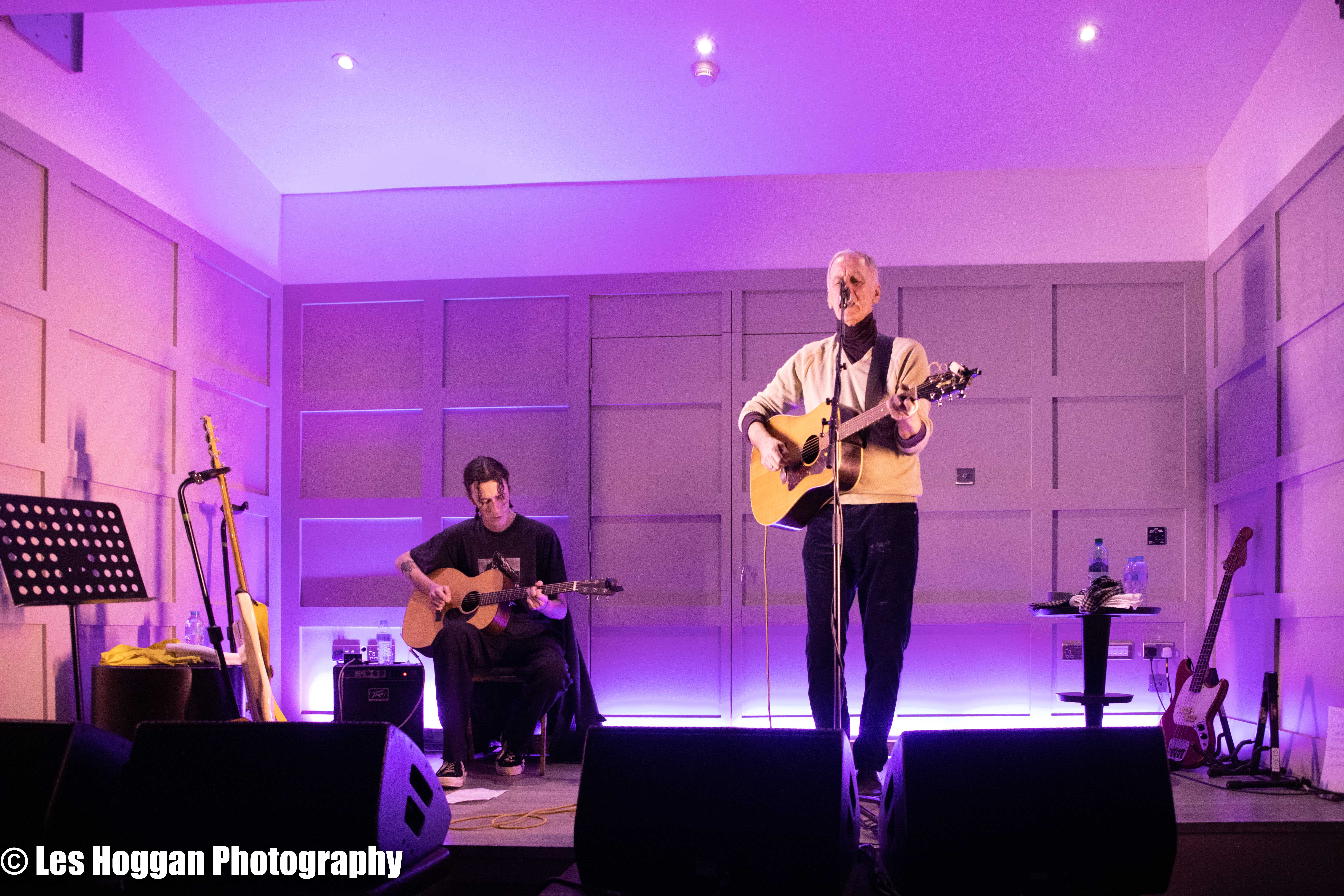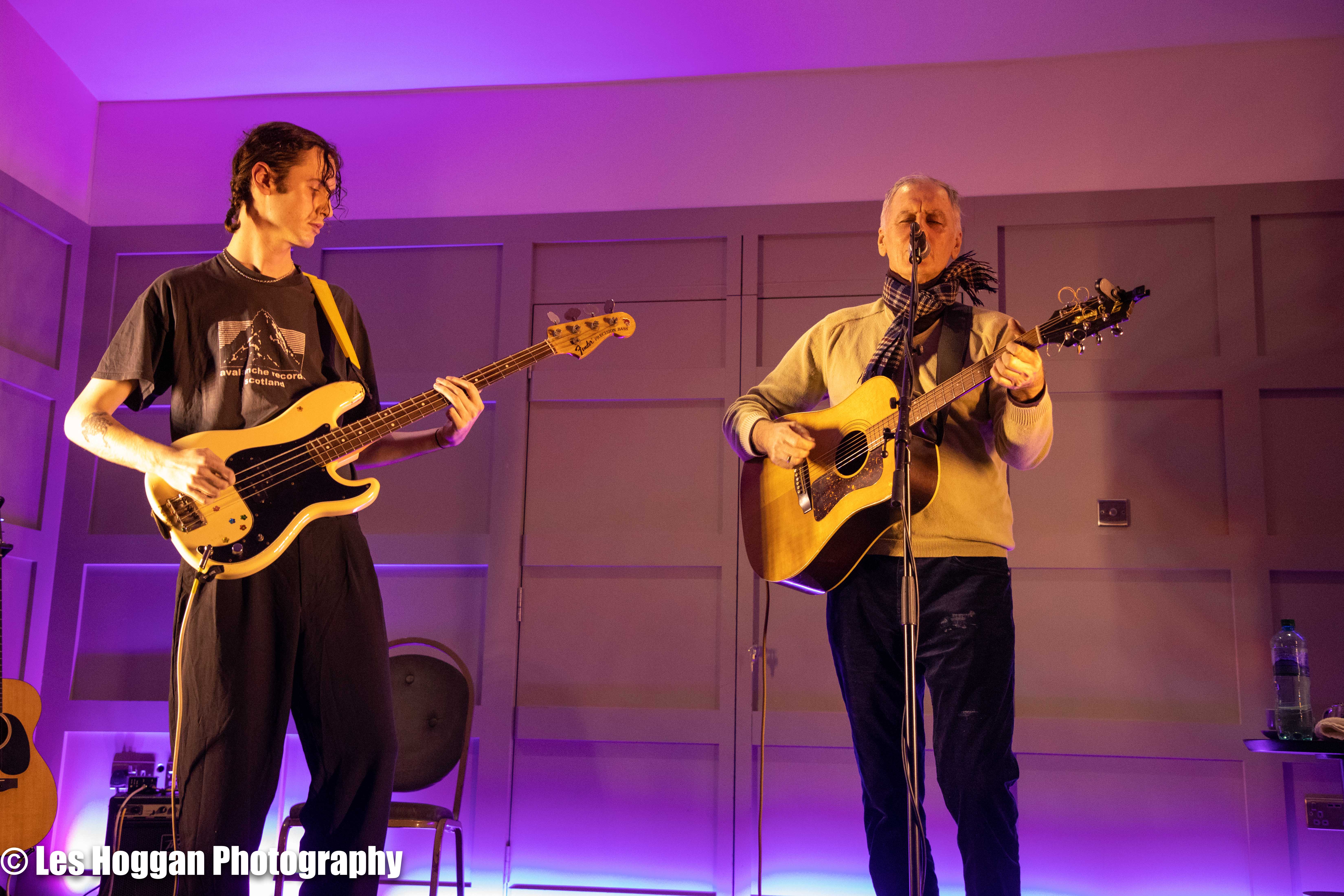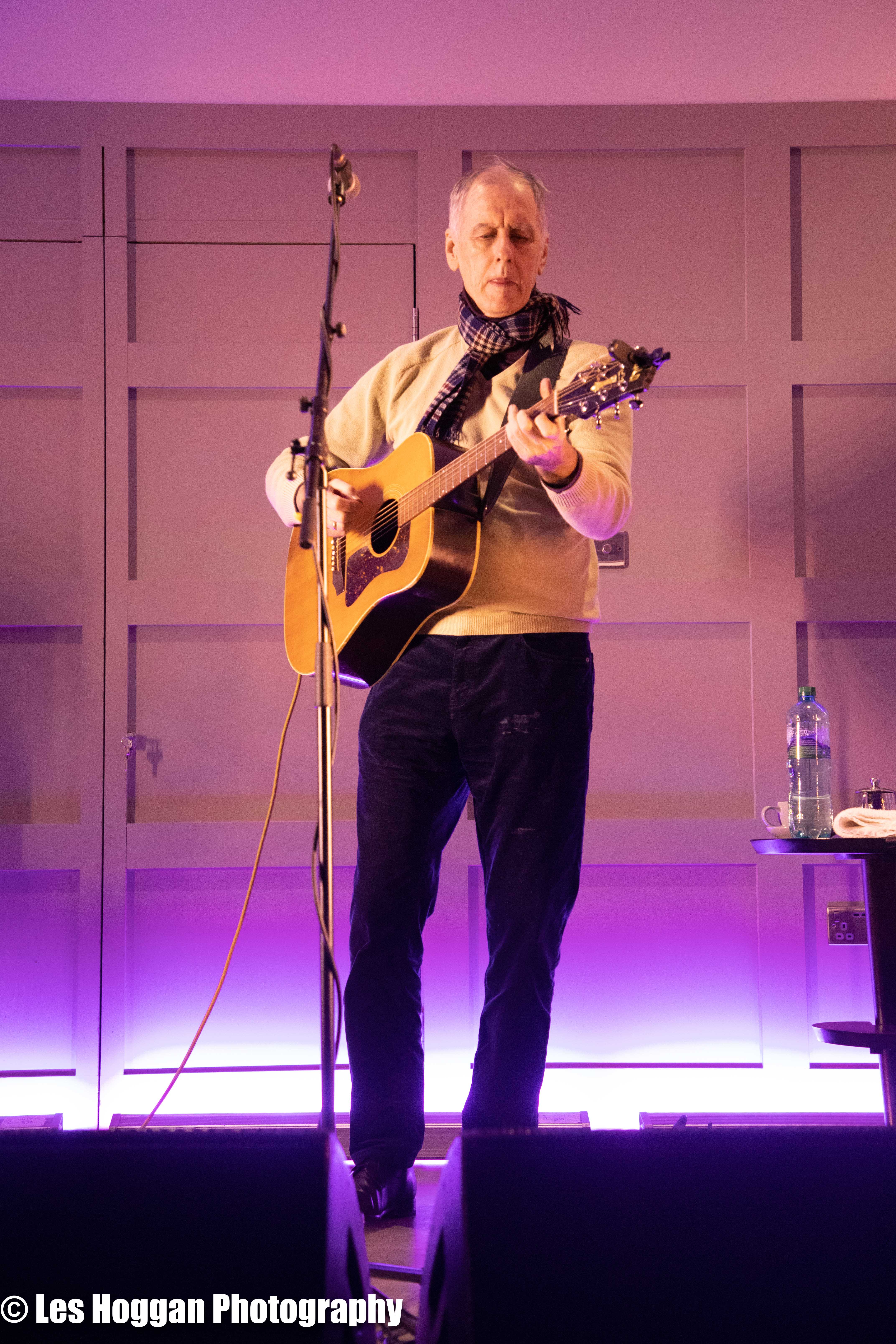 Robert Forster, accompanied by his son Louis, performed a set at Strathaven Hotel on March 11th. This was the opening gig of their tour and was also the first time they had ever performed on stage together, a coup for Frets Concerts. THey were supported by Francis Macdonald, who also performed a duet of ‘Love Goes On’ with Robert as an encore.