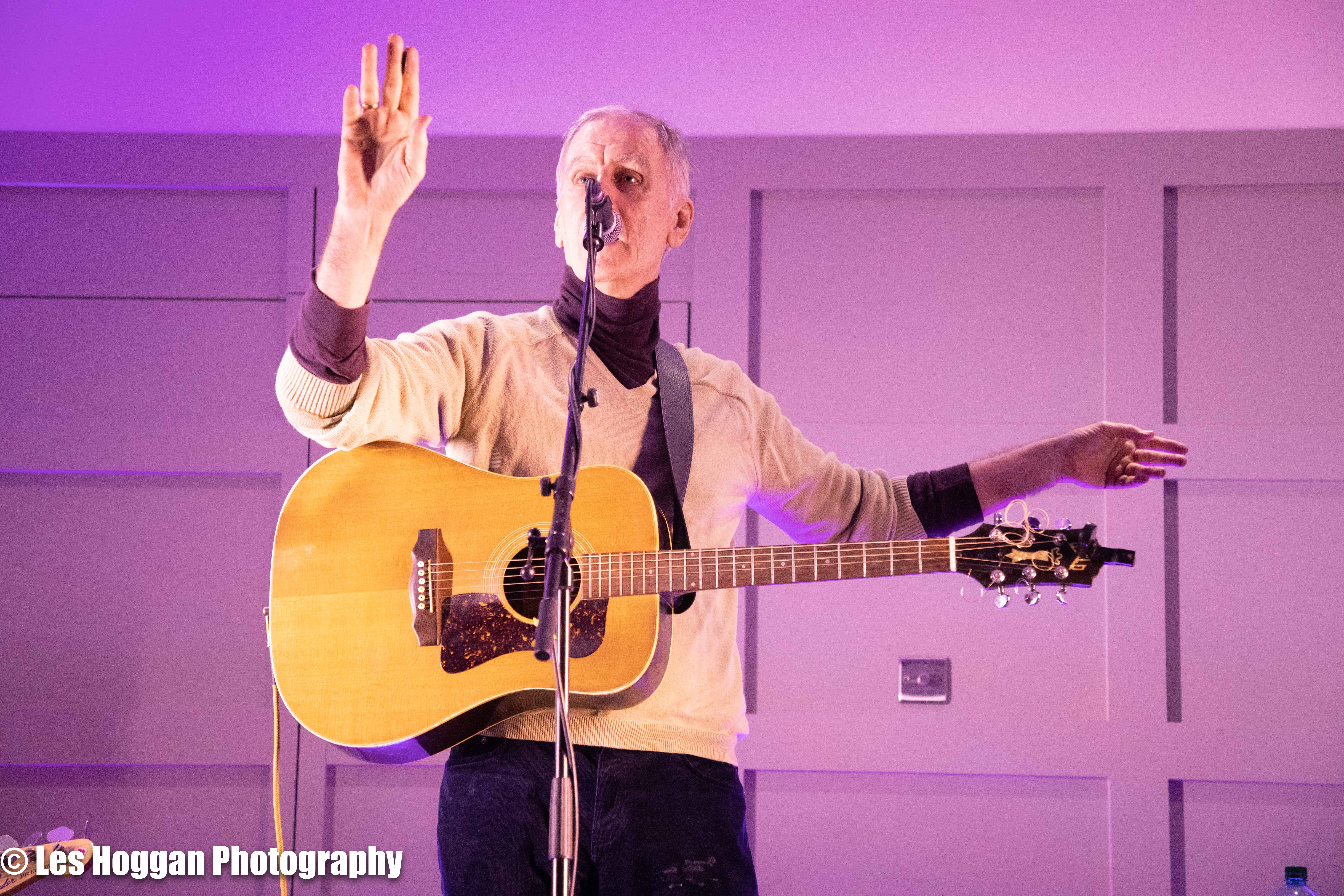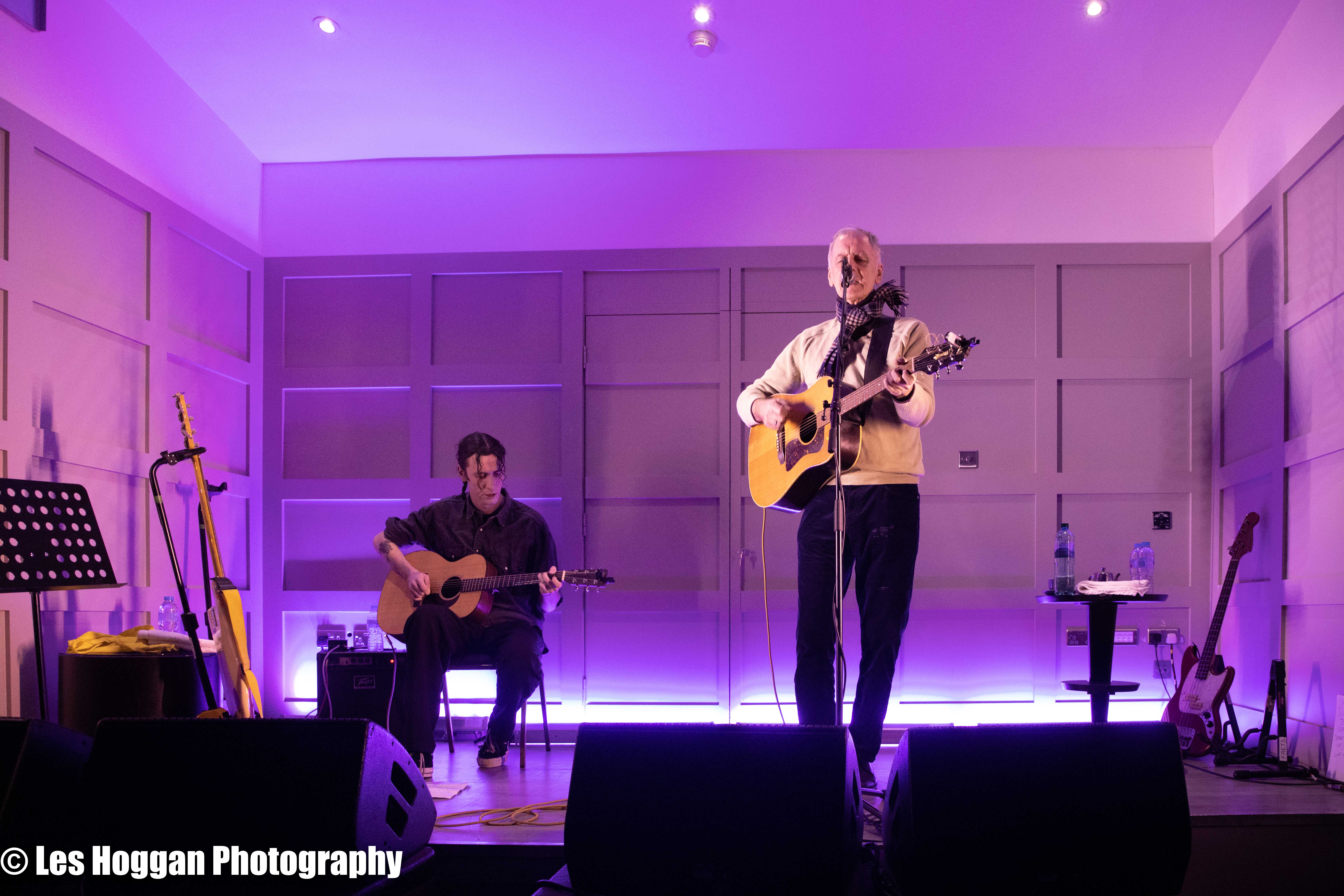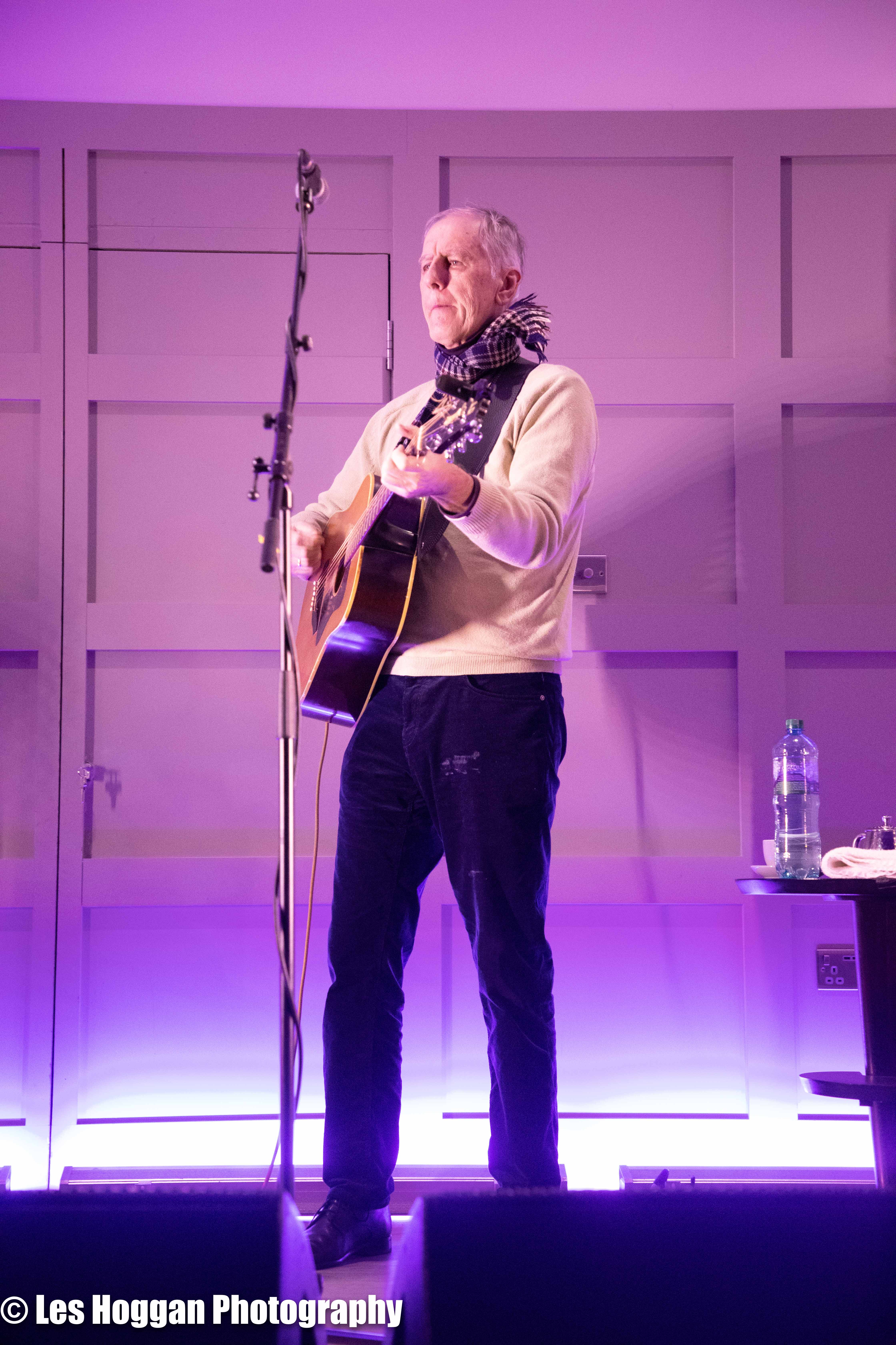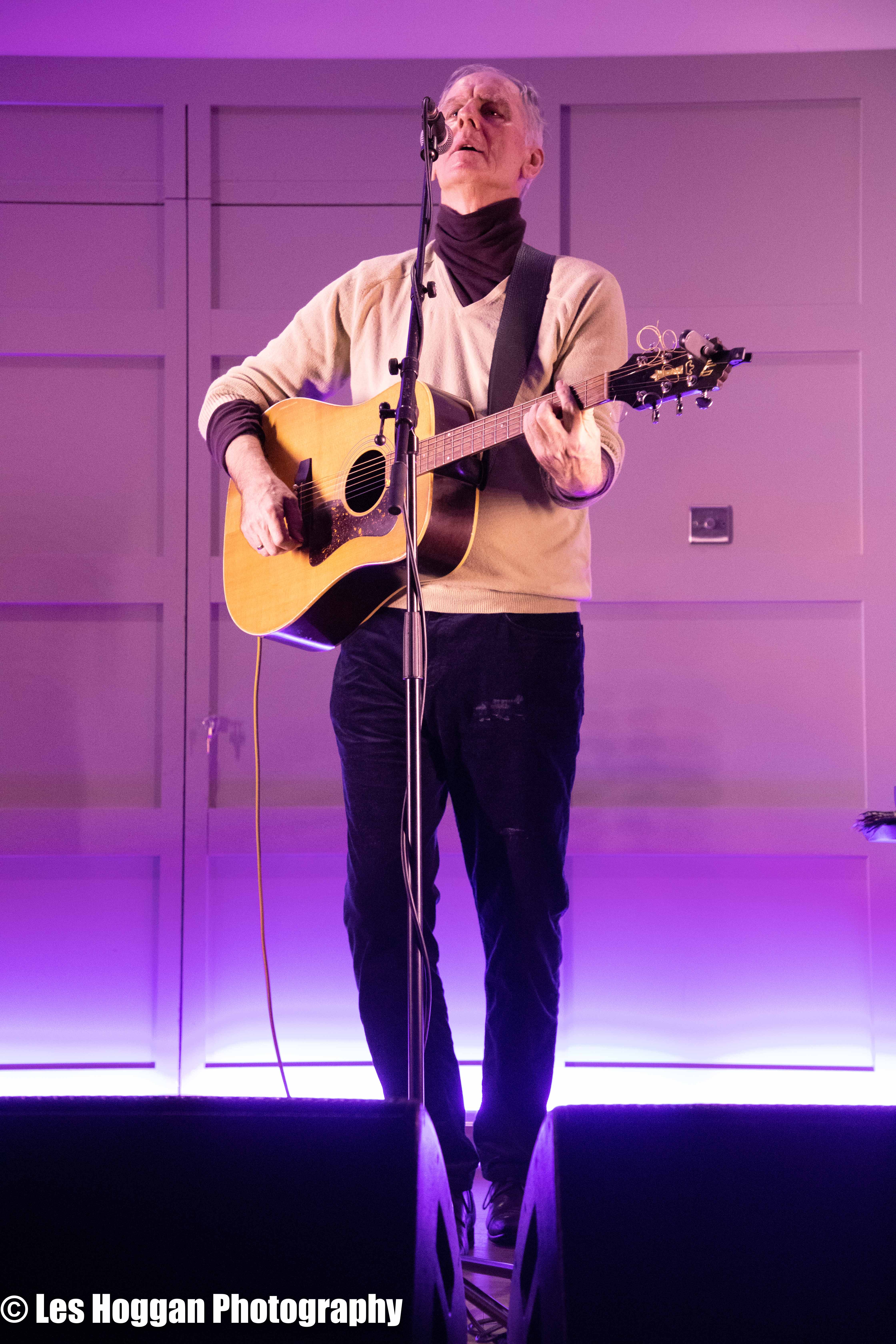Robert Forster, accompanied by his son Louis, performed a set at Strathaven Hotel on March 11th. This was the opening gig of their tour and was also the first time they had ever performed on stage together, a coup for Frets Concerts. THey were supported by Francis Macdonald, who also performed a duet of ‘Love Goes On’ with Robert as an encore.